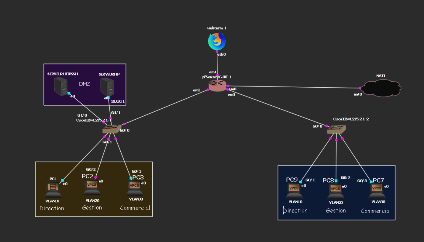 - Administration de Switch et Pare-feu sur différents sites sensibles